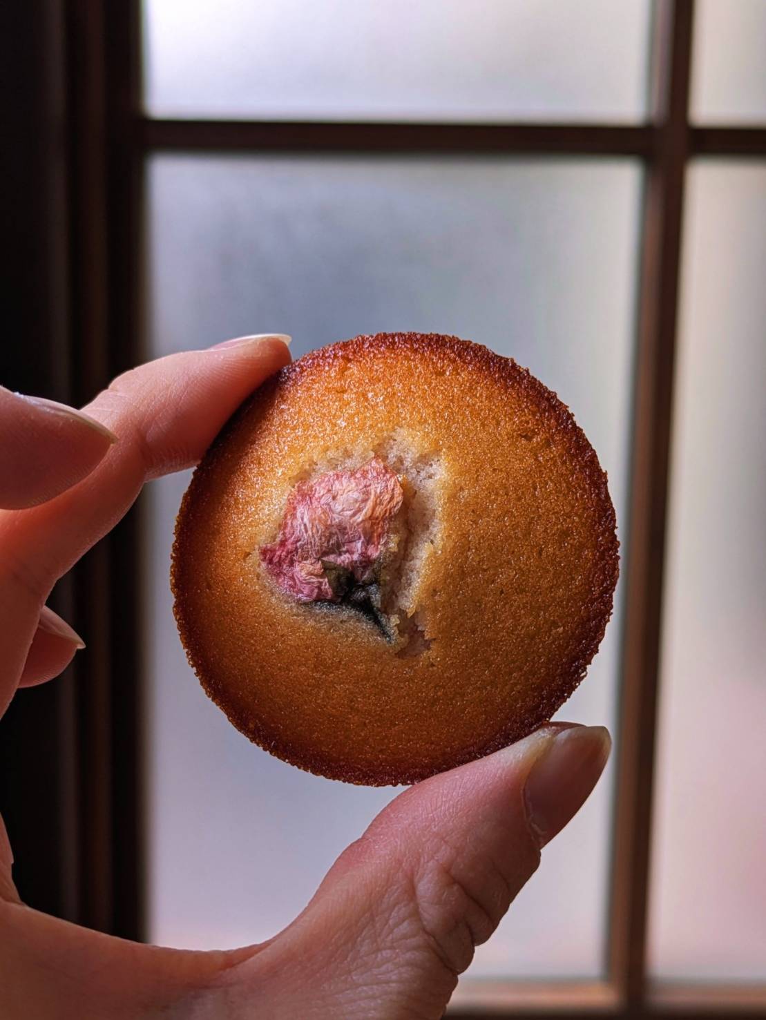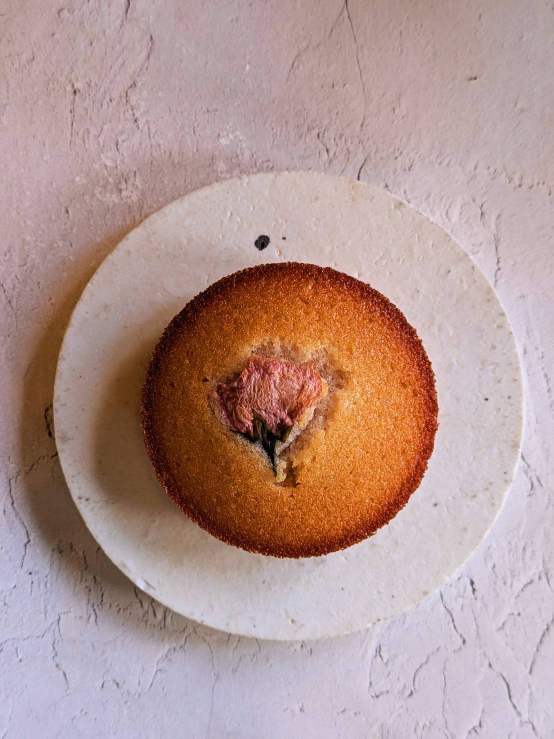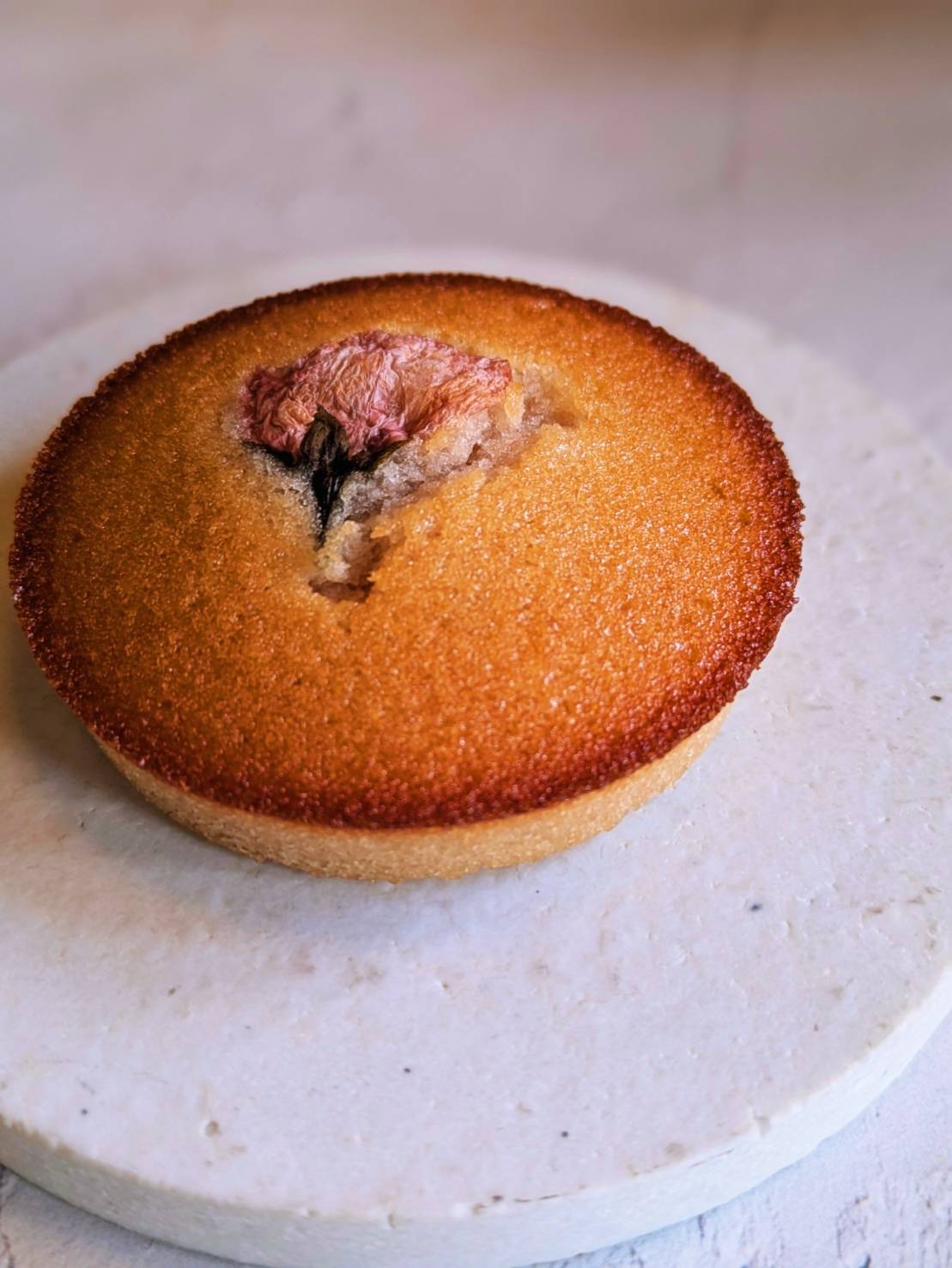 桜の花をあしらったフィナンシェ。